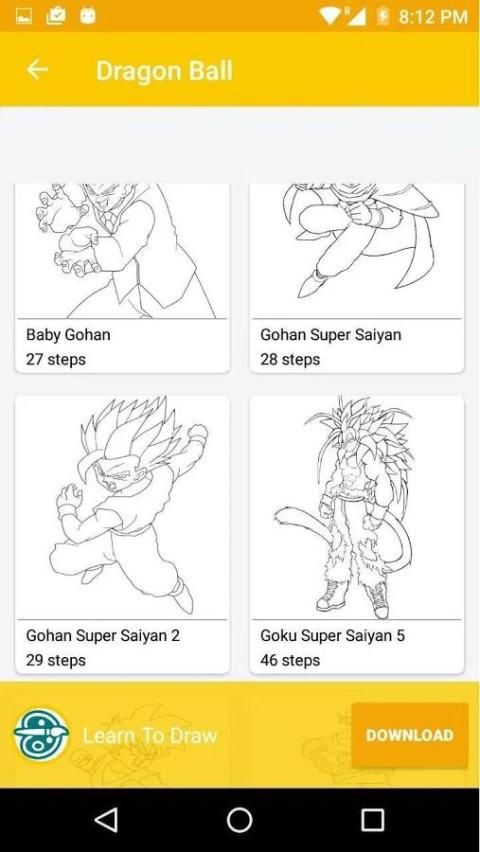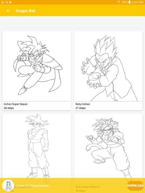Menggambar aplikasi Dragon Ball adalah aplikasi membantu. Hal ini memberikan pengguna langkah gambar untuk masing-masing karakter.