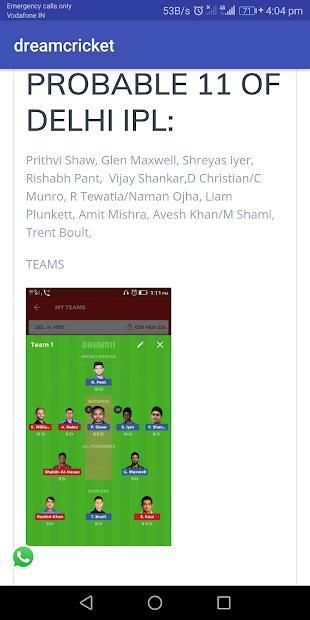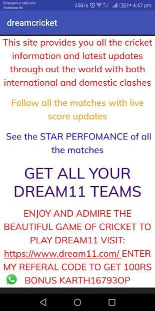 This app provides you the fantasy sports team like cricket, football and NBA. Teams for leagues like dream11, halaplay, myteam11 and much more. You can even check latest cricket updates like player injuries, team news etc. We also provide live scorecards of the matches so that user can stay updated. DREAM BIG AND WIN BIG IN FANTASY SPORTS.