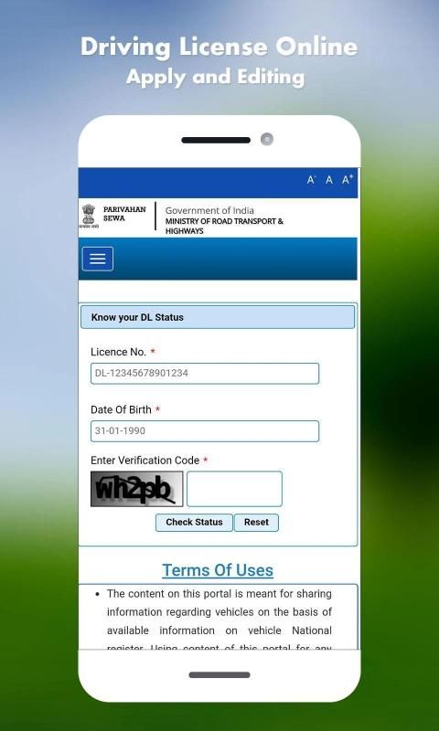 Apply for New Driving License online with ease using Indian Driving License (Driving License India) Indian Driving License is one stop for all states RTO's and allows to apply, check, renewal of Driving license. This app is based on the Official website " Vahan 4.0" launched by Govt of India, Now if you are trying to get yours New Learner's License you don't have to be in que at RTO's etc.,