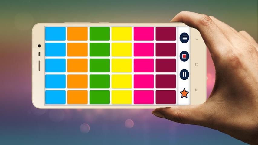 Pertama, Anda akan melihat bidang penuh warna dengan berbagai tombol. Setiap sektor baru adalah suara baru untuk menciptakan musik.