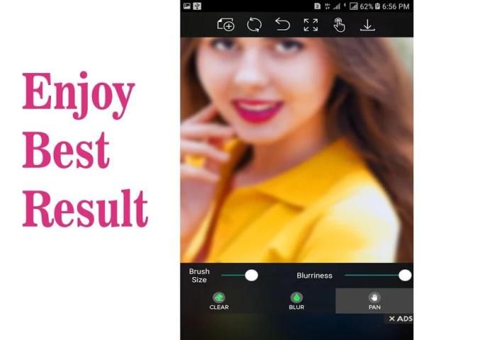 This Blur pic editor has auto blur image background and manual point blur filter effects options. Choose picture from gallery or take picture from camera. To get auto blur background image go to shape blur section. Adjust blur level with the blurriness seekbar. You can also adjust brush size.