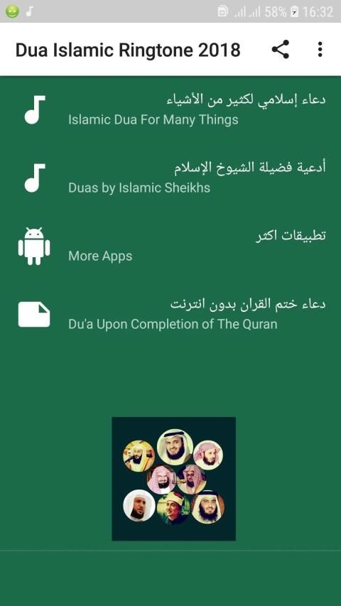 Duas dalam bentuk nada dering dan nada ponsel dari suara-suara terbaik membacakan Arab dan Muslim seperti: