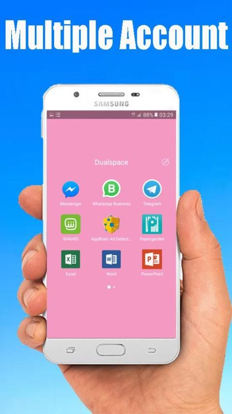 - Ruang ganda: akun ganda sangat mudah digunakan. Buka saja aplikasi dan pilih aplikasi yang ingin Anda jalankan dengan beberapa akun dan nikmati kloning untuk aplikasi itu
