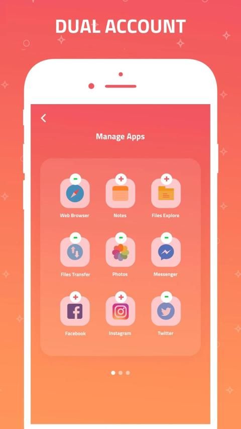 Dual apps : multiple account very user-friendly application. Just open app and select app that you want run by multiple account and enjoy clone for that app.