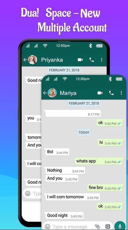 · Dual space New is the latest technology that can clone applications. We do not install more applications in your phone, so your phone will work very smoothly!