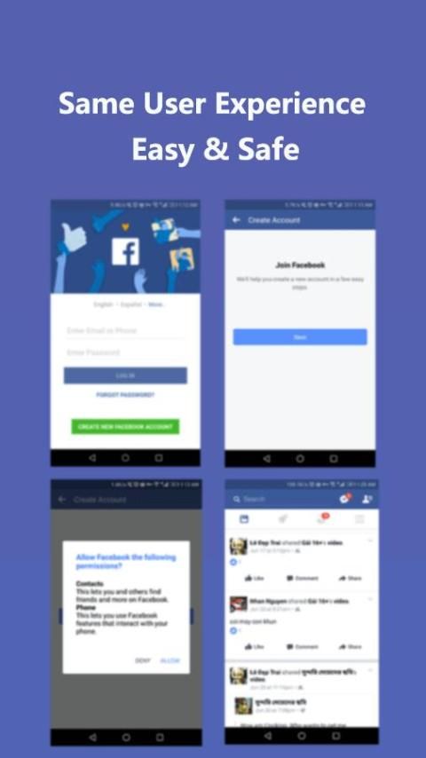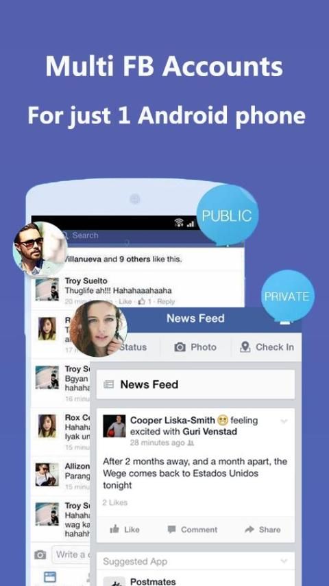 account Anda beberapa Facebook bekerja secara bersamaan pada 1 ponsel Android, menghubungkan lingkaran teman paralel, berbagi informasi yang berbeda dan terpisah pekerjaan dan kehidupan pribadi.