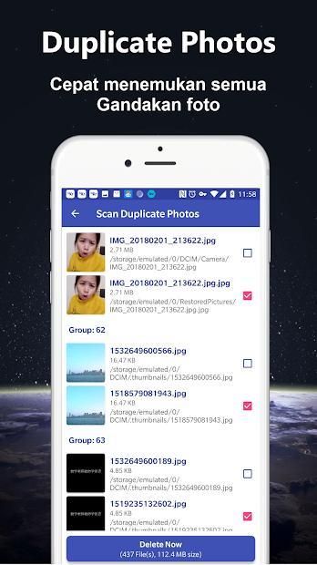 dapat menghapus duplikat foto dan mengoptimalkan telepon Anda!