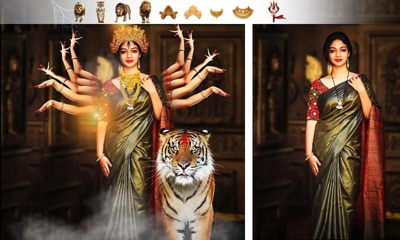 In this option you can do photo mixer of normal photo and Maa Durga photo
