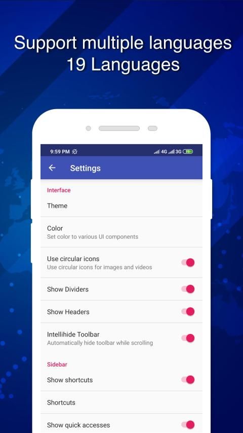 - Easy to manage your files (file explorer) like you do on your desktop or laptop using Multiple Select, Cut/Copy/Paste, Move, Create, Delete, Rename, Search, Share, Send, Hide, Create Shortcut, and Bookmark;