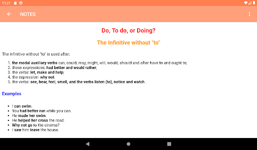 Untuk menggunakan gerunds dan infinitif dengan benar adalah suatu keharusan bagi setiap pembelajar bahasa Inggris.Berikut ini adalah aplikasi yang menawarkan detail