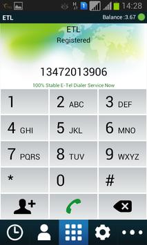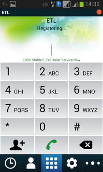 "E-Tel Mobile Dialer" can be used on the compatible Android phone sets to make VOIP calls using a E-Tel Reseller service provider. It allows international voice calls over WiFi or 3G/4G network. E-Tel provider who bundled this application with our customer to download the E-Tel Dialer. After install, user needs username and password. Please contact your reseller to get access PIN.