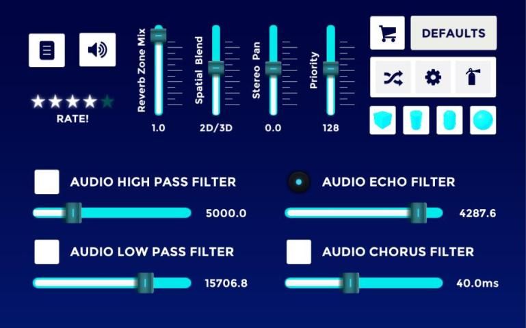 ✔ Control in the volume, pitch, sensitivity, stereo pan, spatial blend 2D/3D...