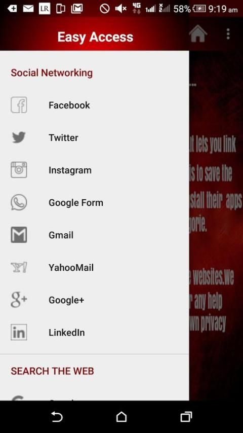 Aplikasi ini akan memberikan Anda segala sesuatu dalam satu app.Facebook, gmail, ymail, instagram dll semuanya dalam aplikasi tunggal Anda tidak perlu men-download appication terpisah demikian menghemat penyimpanan Anda.
