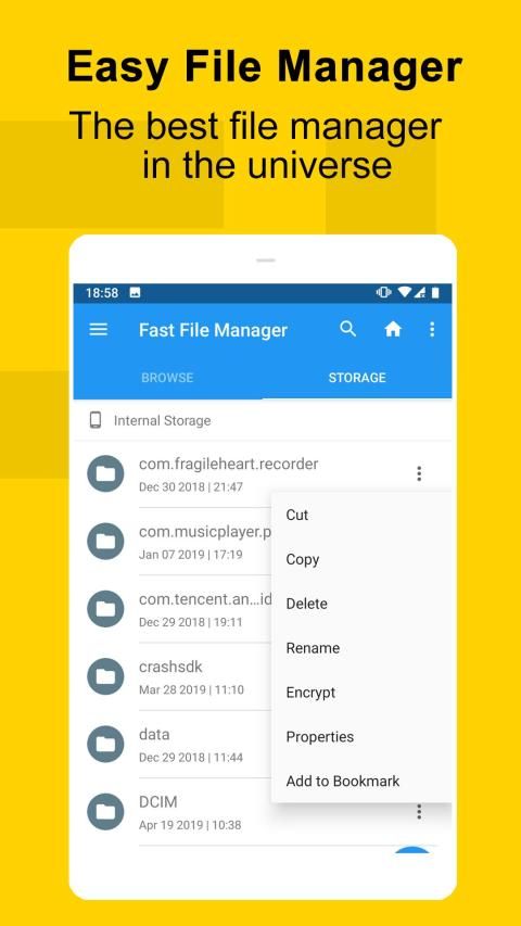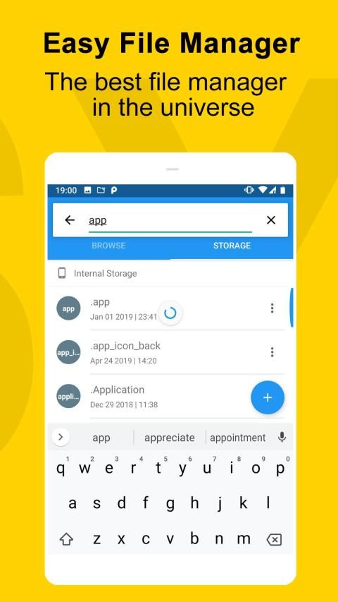 I wants to share an app for all of you. 20,000+ users downloaded Easy File Manager latest version on 9Apps for free every week! In addition, the latest version of the app has updated a lot of features. This hot app was released on 2019-05-13. You can find more interesting apps at 9Apps!