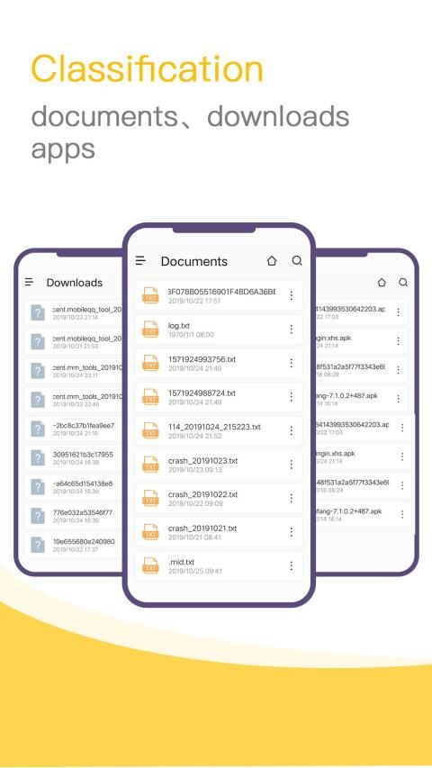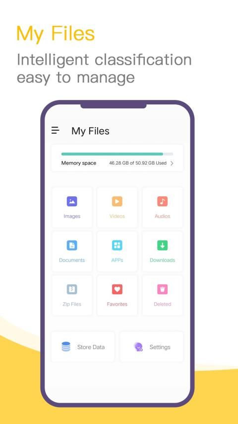 • Downloads / Images / Audio / Videos / Documents / New files : Your files and folders are automatically sorted by their file types and characteristics so that you can easily find exactly the file you are looking for.