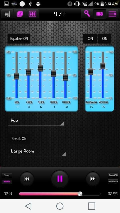12. Bass booster, dukungan virtualizer (0-100%).