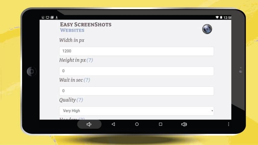 Configure image quality, Sizes, Send Cookies, Headers and more advanced parameters.