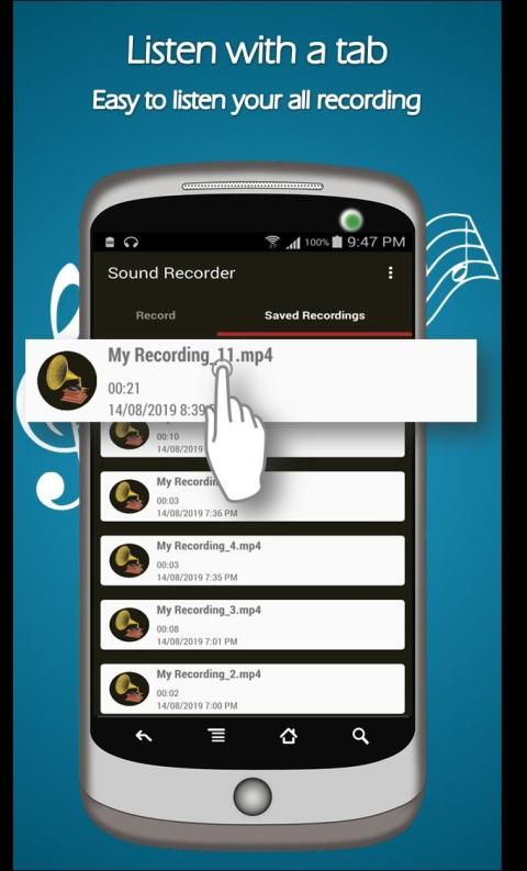 Easy Sound Recorder Best recorder for Android phone. You can use for sound recording, speech recording, song recording, music recording, lecture recording in class. It is a high quality and powerful voice recorder.