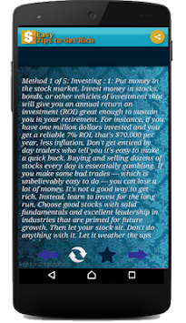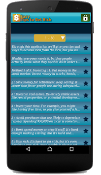 Application ''Easy Tips to Get Rich'' gives you information and tips and ways to get rich