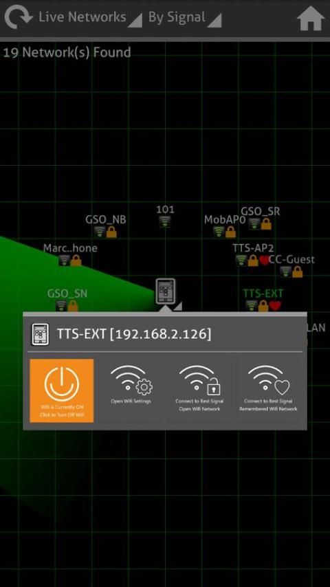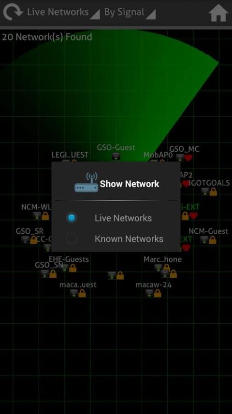 Pandangan Radar memberikan pengguna pandangan yang lebih lengkap ke jaringan wifi di sekitar wilayah dan dengan satu klik terhubung untuk itu!