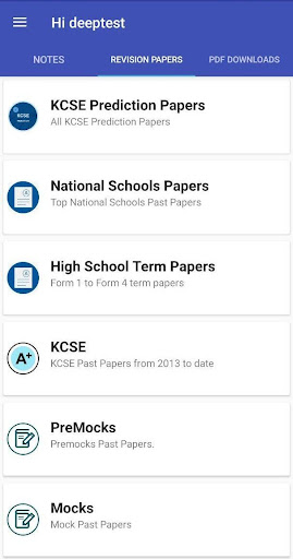 Aplikasi ini memiliki catatan sekolah menengah Kenya dari Formulir 1 hingga Form 4 dan Makalah Masa Lalu, Formulir 1 untuk Formulir 4, Mocks, Premocks dan juga KCSE PastMakalah.