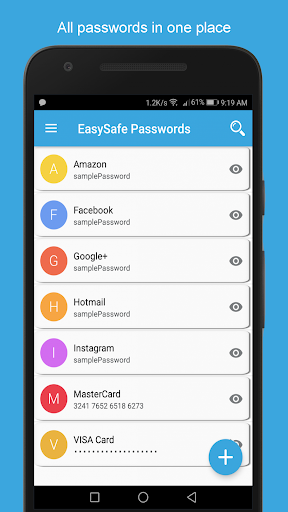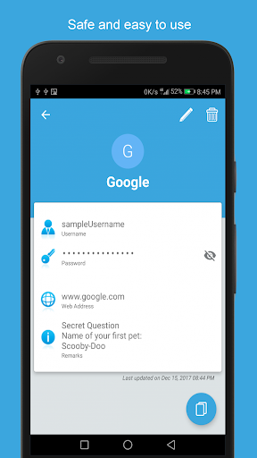Tired of frequently forgetting multiple passwords from different accounts? EasySafe helps you manage all your passwords in one place. Smart, simple and secure. Choose to create your own password or generate strong passwords with its built-in password generator. All equipped with advanced encryption to safeguard your account.