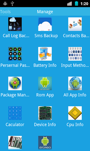 Make your life easy and simply. This app enable you backup and restore your call log,SMS, contacts easily. Make life easy and simple, there is a quick telephone, text messaging, address book view, backup and restore, convenient map view camera, reader notes, calculator, compass, and GPS positioning,Ease of application management, easy to set lock , management input method, mobile phone CPU, memory, battery information.v1.8Backup and restore address , call log, SMS.App management.Compass, reader, note, caculator.GPS onoff and map locate.Phone, CPU, memory, kernel, and battery infomation.Set password lock and input method setting.Add flashlight, music player, movie player and file browser management.