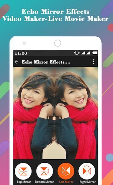 Rekam Video Langsung dengan Echo Mirror Effects Video Maker. Tambahkan Efek Cermin Echo ke pengambilan gambar video langsung Anda dengan efek seperti Heart Mirror, tanpa akhir, Campuran hati, Mirror render, Moving Mirror, dan sebagainya.
