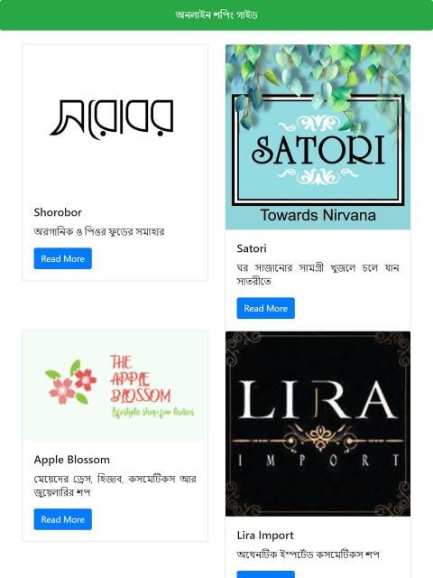 E commerce is getting popular day by day here in Bangladesh. People in BD are inclining towards online stores rather than physical shops or markets. Online Shopping guide BD is an e-commerce store introduction app made for Bangladesh. This online shopping apps introduces all the good quality online shops in BD and their Facebook page, phone number, what they offer etc. Hope this will help shoppers to get proper value of their money :) What you'll get here: