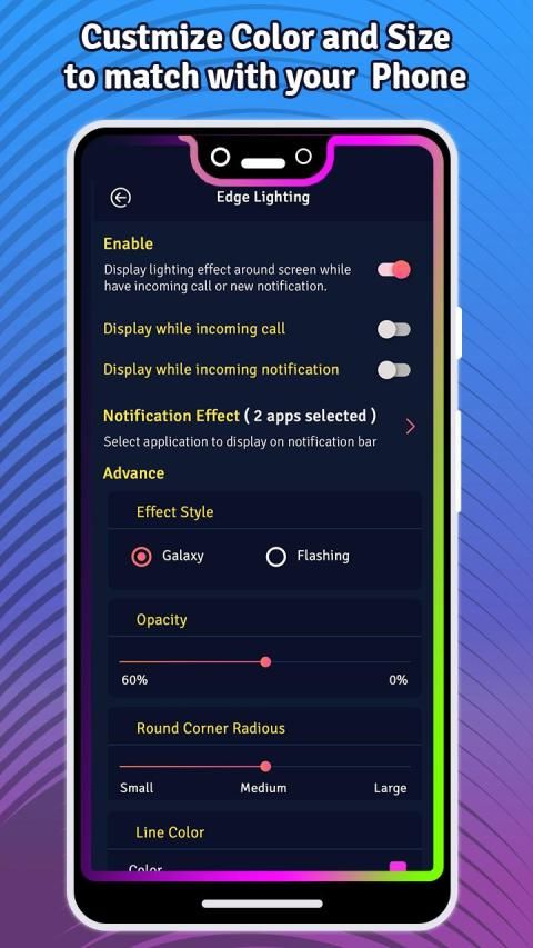application allow animated live wallpaper theme with that you can set Edge lighting rounded corner live wallpaper in your device.application does not consume more battery while you set in your mobile screen as live wallpaper.it adds smooth and beautiful round corners live light into your screen.