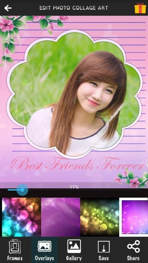 Edit Photo Collage Art with a friendly interface, simple design, easy to use: with just a few simple steps as select frame, select images, rotate, zoom in, zoom out, move, save that you have a extremely artistic photographs.