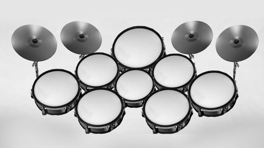 -Instruments seperti tendangan, snare, bass, lantai, simbal, hi-hat, kecelakaan, naik, lonceng, cowbell dan rebana