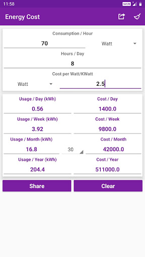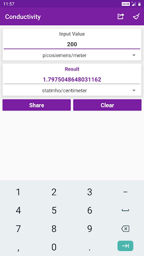 • Nilai dan hasil yang dihitung dapat dibagikan ke media sosial, surat, pesan dan aplikasi berbagi lainnya.