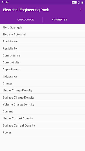Kalkulator listrik berisi 45 kalkulator, yang dapat dengan cepat dan mudah menghitung parameter listrik yang berbeda.Perhitungan dan konversi otomatis dengan setiap unit dan perubahan nilai.
