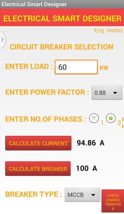 Aplikasi gratis ini membantu insinyur listrik yang bekerja di bidang desain / konstruksi untuk bangunan untuk menghitung arus dan pemutus sirkuit diperlukan untuk layanan. aplikasi ini berisi:
