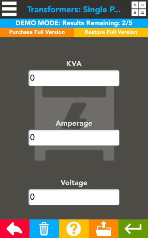 Yang terbaik listrik transformator kalkulator di toko app! Listrik Transformer Helper adalah salah satu stop shop untuk perhitungan transformator. Perhitungan meliputi: Ternyata, Kva, Dasar dan Menengah OCPD, ampere, dan banyak lagi! Ini adalah alat yang hebat untuk membuat keputusan yang cepat dalam bidang atau kantor.