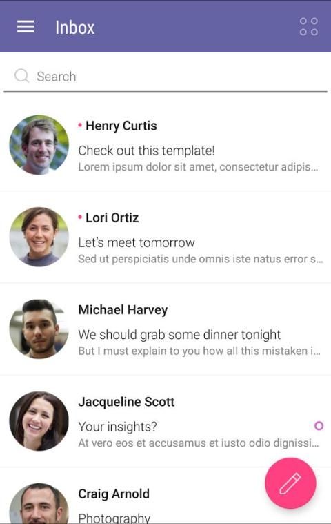 Template ini Android mobile semua yang anda butuhkan untuk membuat sendiri klien email berkualitas tinggi Anda. Ini berisi semua fungsi email inti dan komponen dibungkus dalam desain bahan yang indah. Antarmuka yang sederhana dan sangat mudah bagi Anda untuk menyesuaikan.