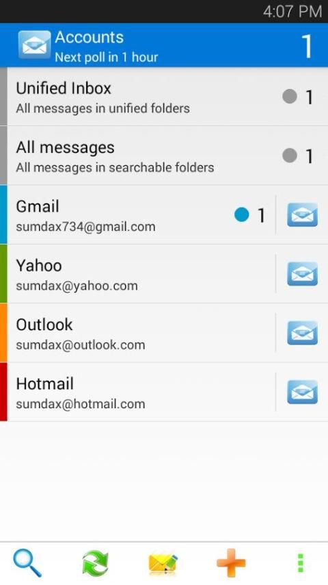 - Anda akan dapat memeriksa account email Anda (Hotmail, Outlook, Yahoo, Gmail dan banyak lagi ...) kapanpun Anda inginkan dan di mana saja dengan menggunakan perangkat Android Anda.