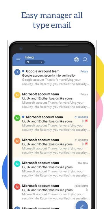 - Email app for Gmail & Outlook support large storage capacity, user don’t need to delete old mail to update new mail