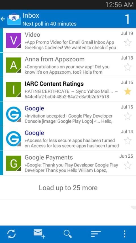 -dengan ramah menavigasi antarmuka antara akun email Anda tidak pernah begitu mudah. Aplikasi ini memiliki banyak pilihan sehingga Anda dapat mengelola kotak surat Anda, cari email berdasarkan nama, tanggal, lampiran. mengatur email Anda dengan folder (Anda dapat membuat folder baru atau menggunakan folder default).