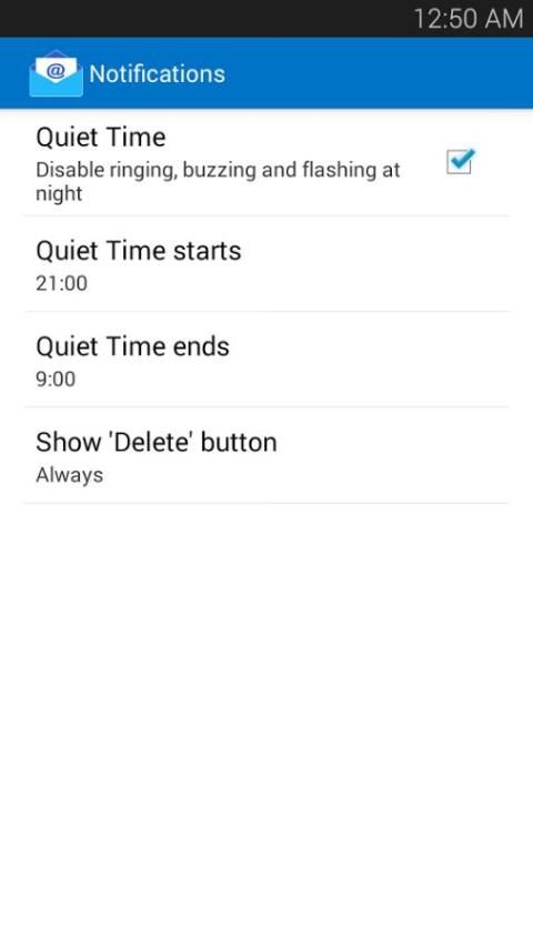 - Dorong pemberitahuan: Anda dapat selalu diberitahu tentang email Anda dengan pemberitahuan instan, Anda dapat menyesuaikan pemberitahuan ini, menambahkan nada dering khusus atau getar, juga Anda dapat membungkam mereka untuk sementara waktu.