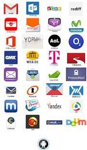 Los mejores proveedores de correos electrónicos gratuitos en una misma aplicación, the emails all in one. Para tener los principales proveedores de correos electrónicos o emails en una misma aplicación. Gmail, gmx, letter, libero, yopmail, aol, arcor, zoho, movistar, orange, vodafone, o2, tiscali, web.de, yahoo, outlook, entre otros.