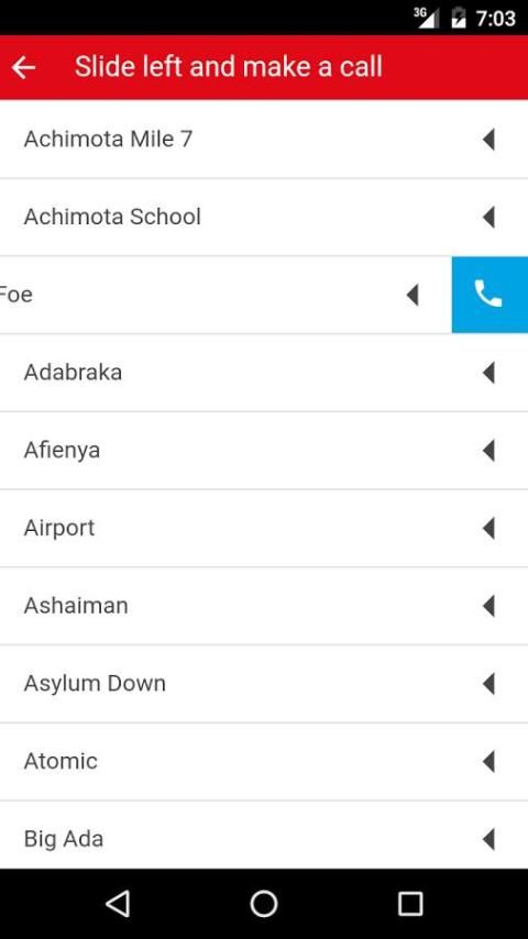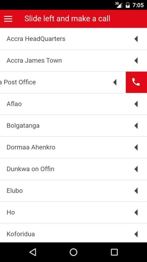 Aplikasi ini memungkinkan pengguna untuk memanggil garis layanan berikut, serta stasiun mereka di 10 daerah Ghana: