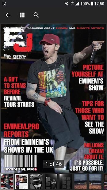 This magazine is our pearl. No other project have anything like it! We publish our magazine, which is dedicated to the artists of Shady Records. First issue was published on April, 30th 2012 and made a huge resonance in the fan community at once. EJ is a unique project, it has no analogies neither in Russian Internet segment, nor in foreign. Magazine’s first issues were approved by fan community and got positive reviews from ePro readers. EJ magazine is constantly improving and its audiences is grow-ing from issue to issue. Today EJ Magazine is available to all the readers for free in our app Eminem.pro for Android, and in PDF at our website. We carefully check all the content before we do the layout, using graphic materials of the highest quality. Thereby our magazine can be read on any device from new iPhone Xs Max to any Android tablet. During the existence of the magazine we have created a lot of interesting headings, and have published a variety of exclusive materials. Our traditional Halloween and New Year EJ Magazine issues have become favor-ites among readers. Below are some curious facts about the magazine.