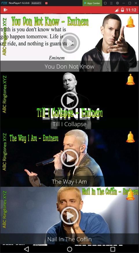 Trong Eminem Ringtones có những bài nhạc chuông hot hit mới nhất, cập nhật những bài hát hay nhất, được chọn bởi 1 cộng đồng lớn của những người yêu thích điện thoại Android.