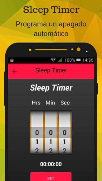 Definir un temporizador “sleep timer” para apagar automáticamente la aplicación;