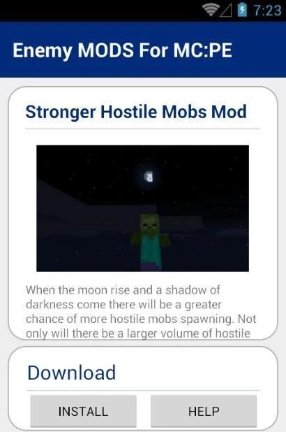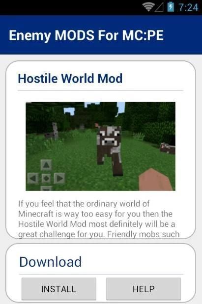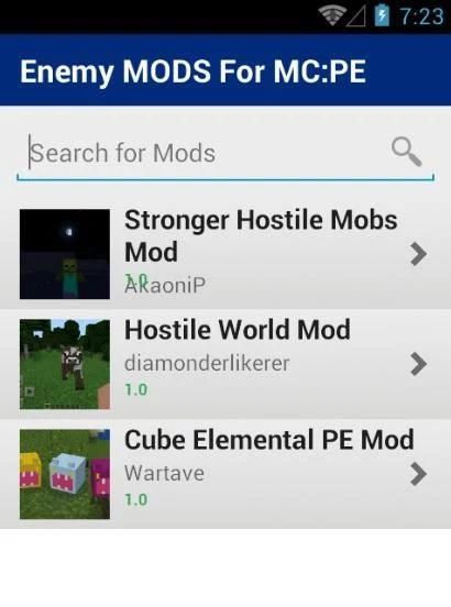 Musuh MODS Untuk MC: PE ditambahkan untuk menambah salah satu versi yang paling manis dari mods ramah versi untuk Minecraft PE. Ia menambahkan total 3 mods untuk permainan.