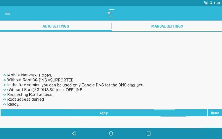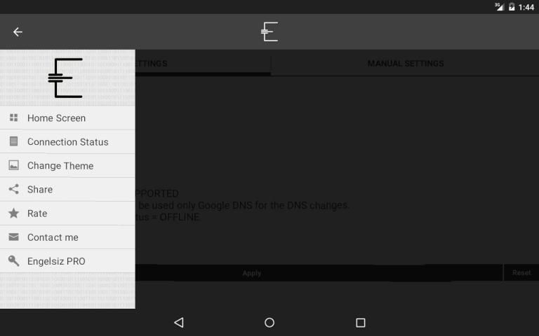 Alat ini memberikan mengubah 3G dan WIFI DNS informasi easly TANPA ROOT atau dengan akar untuk pengguna Android. (Engelsiz berarti di Turki "tanpa hambatan")