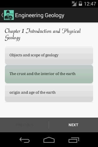 It is swipe based design for civil engineering student to learn basic concepts of geology. It almost cover important topics of engineering geology which are given below