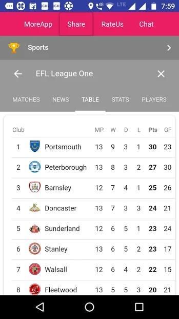 Aplikasi Ini Menyediakan semua tentang Liga Inggris Satu dengan Skor Live, Point Table, Jadwal, Hasil, Pencetak Gol Terbanyak, Nama Tim, Daftar Pemain.